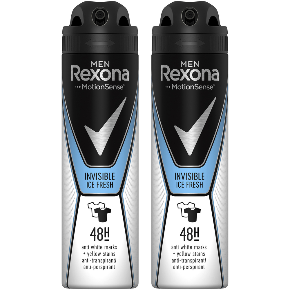 Rexona Pachet x2 Deodorant antiperspirant spray Rexona Invisible Ice pentru barbati, 150 ml