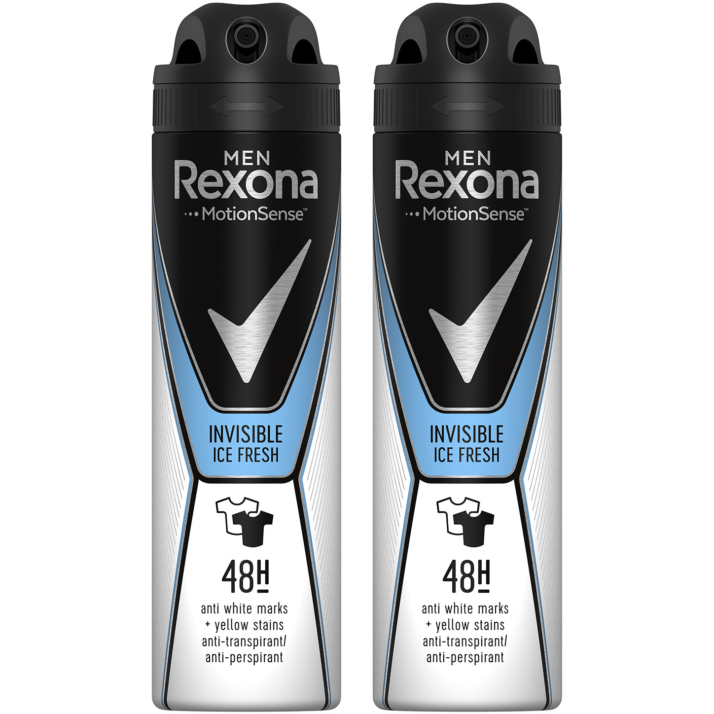 Pachet x2 Deodorant antiperspirant spray Rexona Invisible Ice pentru barbati, 150 ml