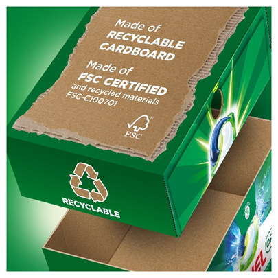 Haideti sa reducem cantitatile de plastic cu Ariel Allin1 Mountain Spring. Capsulele Ariel pot contribui acum la reducerea cantitatilor de plastic datorita cutiei reciclabile de carton ECOCLIC. Aceasta contine doar maximum 5% plastic pentru a va pastra capsulele. |