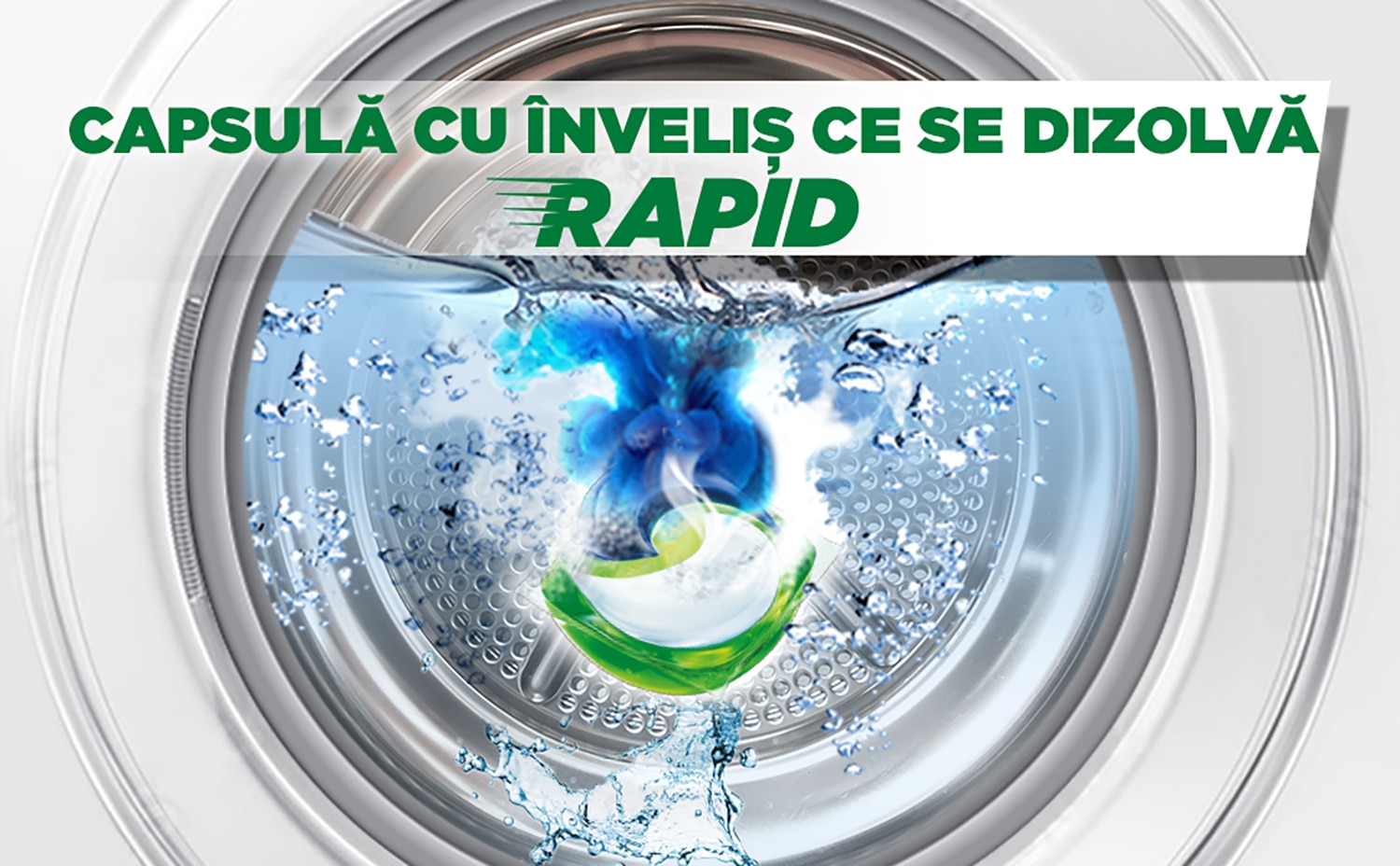 Detergentul de rufe Ariel Allin1 PODS are o pelicula complet solubila in apa, cu actiune de dizolvare rapida. la contactul cu apa, pelicula se dizolva pentru a elibera tehnologii puternice de indepartare a petelor, pentru o curatare impecabila de la prima spalare, chiar si in apa rece si la program scurt. |