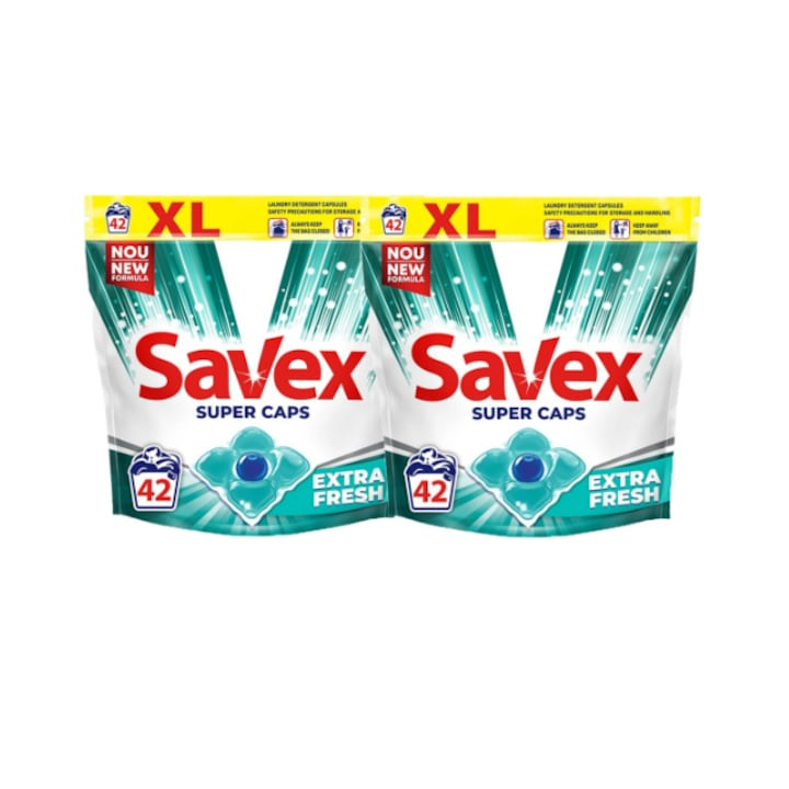 Savex Set 2 x Detergent rufe automat Savex Super Caps Extra Fresh, 42 capsule, 84 spalari