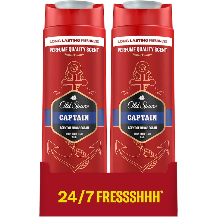 Set 2 x Gel de dus si sampon 3-in-1 Old Spice Captain pentru corp, par si fata, 2 x 400 ml