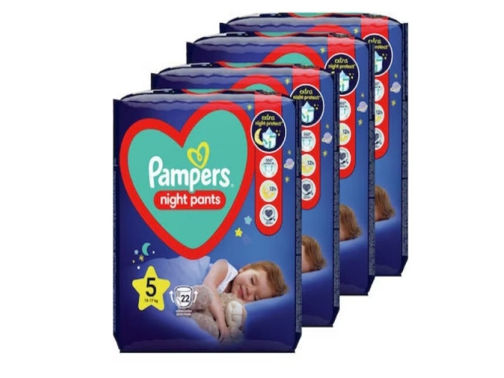 Pantaloni Pampers pentru noapte, nr. 5, 88 bucati, protectie 12 ore, (4x22 buc)