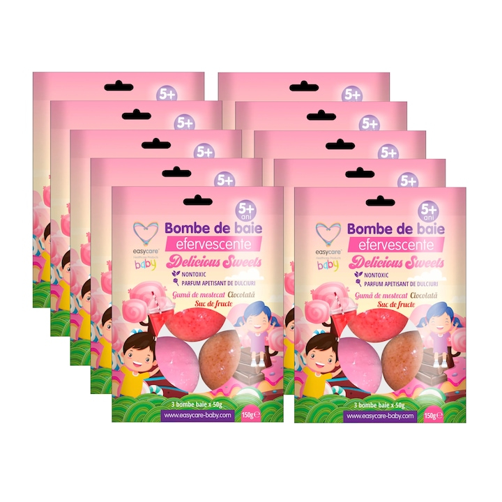 Set 10 x Bombe de baie efervescente, aroma de ciocolata, guma de mestecat si suc de fructe, 30 buc