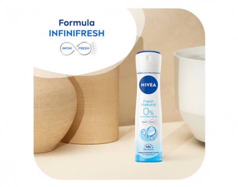 Bucura-te de protectie intreaga zi cu Deodorantul Antibacterian Spray NIVEA Fresh Natural! Formula INFINIFRESH lupta activ impotriva bacteriilor care cauzeaza mirosurile neplacute. Toleranta pielii este dovedita dermatologic si are un parfum proaspat, de lunga durata. Deodorantul Antibacterian Spray NIVEA Fresh Natural ofera 48 de ore de protectie si lasa pielea curata, cu un parfum proaspat, toata ziua. Contine 0% aluminiu si este aprobat dermatologic pentru toleranta pielii sensibile.