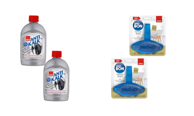 Set Sano Variety 4 x Componente, 2 x Anticalcar Masina Spalat 500ml Gel, 2 x Odorizant Wc 55G Luxury Hotel, rapid si eficient, usor de aplicat, testat dermatologic, prospetime de lunga durata, elimina mirosuri neplacute