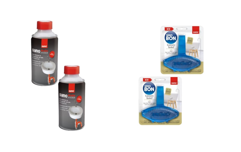 Set Sano Variety 4 x Componente, 2 x Granule Desfundat Tevi 200G, 2 x Odorizant Wc 55G Luxury Hotel, rapid si eficient, usor de aplicat, testat dermatologic, prospetime de lunga durata, elimina mirosuri neplacute