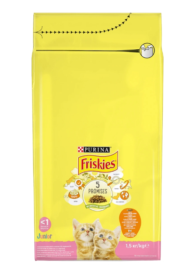Hrana uscata pentru pisici Friskies Junior, Pui & Legume, 1.5 Kg