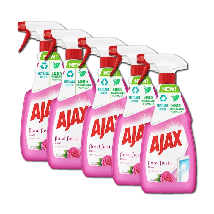 Ajax Pachet Solutie pentru curatat geamuri Ajax Floral Fiesta Flowers Bouquet Pink, 500 ml X5