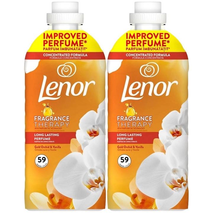 Set 2 x Lenor Balsam Rufe 1239ml Gold Orchid 59 Spalari, ingrijire delicata a tesaturilor, protectie impotriva uzurii, protectie impotriva calcarului, alergeni redusi, tehnologie anti-miros