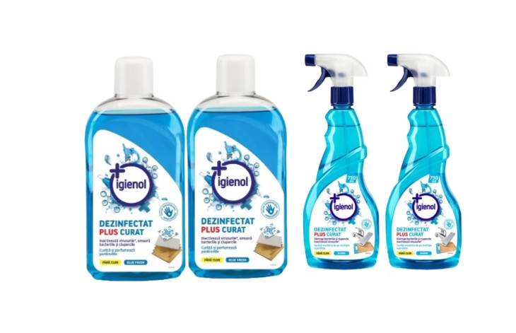 Set Curatenie Igienol: 2x Dezinfectant Universal 1L Blue Fresh + 2x Solutie Multisuprafete 750ml Marin